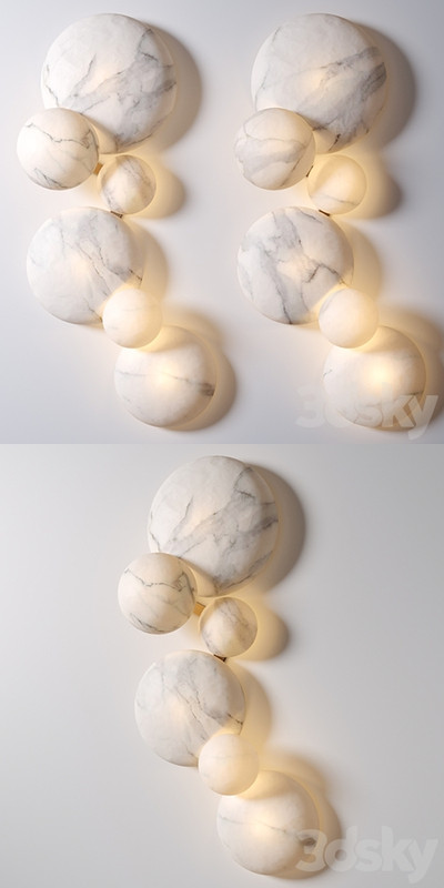 Pair of wall sconces “Bubbles” in alabaster and patinated brass structure. Modern creation by Studio Glustin.