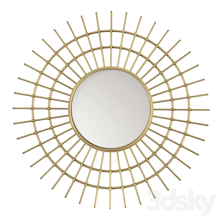 Soleil means sun in French. Soleil mirror with straight and rounded gilded brass tubes. The use of gold trim enhances the luxurious element of this decorative object.