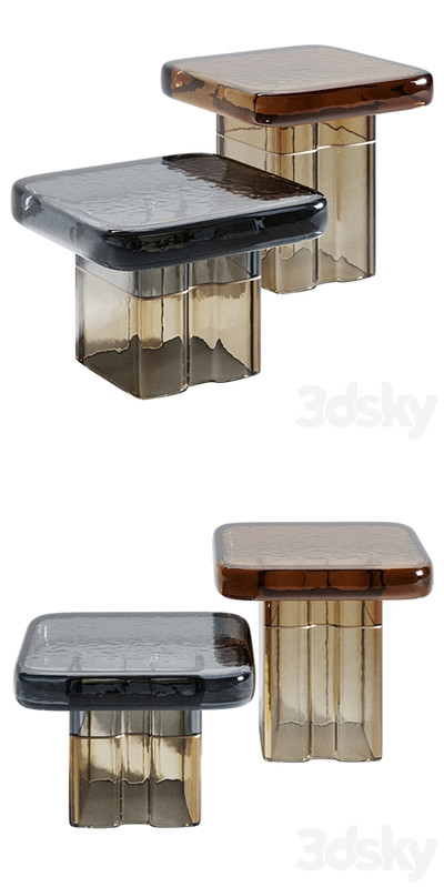 Murano glass coffee table and side table with green or tobacco colored base. The upper is available in amber, tobacco and grey.